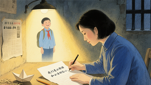 江竹筠在得知自己即将被敌人杀害时,将唯一的儿子托给表弟谭竹安,并一再叮嘱“盼教以踏着父母之足迹,以建设新中国为志,为共产主义事业奋斗到底”。信里满载着一名母亲对儿子浓浓的思念。