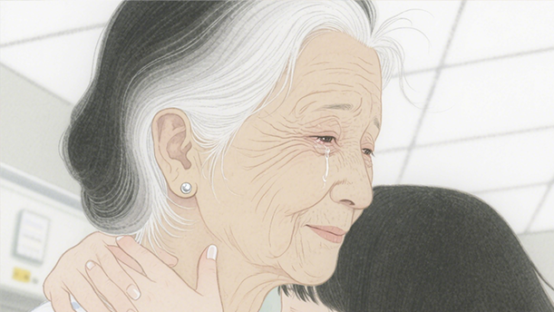 母亲终于闭上眼睛。我以为母亲睡着了,母亲准备把她放到床上去。可是,我忽然看见,有两行泪水从母亲的眼角流下来……