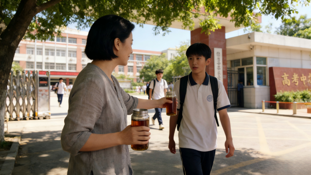 高考那年,母亲请了假天天站在考点门口为参加高考的男孩助阵。时逢盛夏,烈日当头,固执的母亲在烈日下一站就是几个小时。考试结束的铃声响了,母亲迎上去递过一杯用罐头瓶泡好的浓茶叮嘱孩子喝了,茶亦浓,情更浓。望着母亲干裂的嘴唇和满头的汗珠,男孩将手中的罐头瓶反递过去请母亲喝。母亲说,孩子,快喝吧,我不渴! ——母亲撒的第四个谎。
